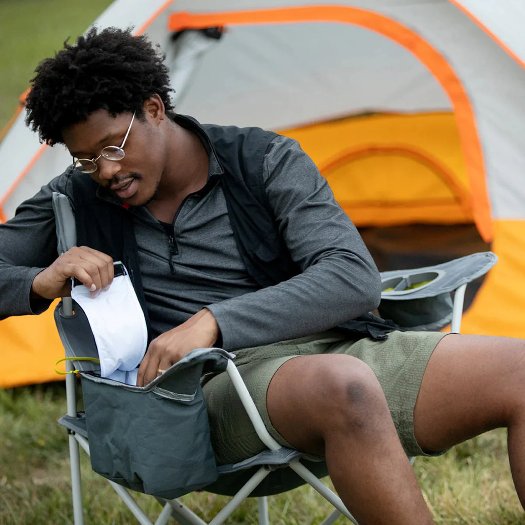 PORTABLE: The chair easily folds up and fits in the included carry bag with shoulder strap for simple transport and storage.
