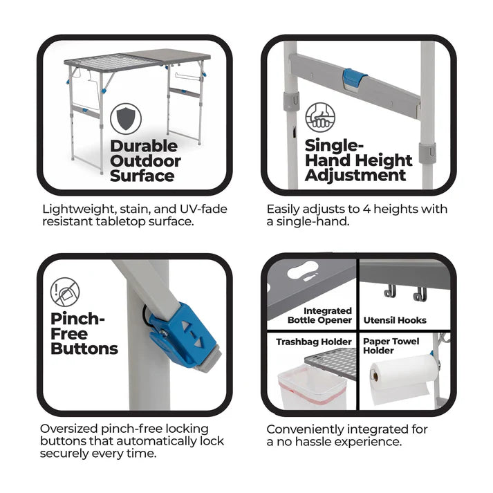 DURABLE OUTDOOR SURFACE: Lightweight, stain and UV-fade resistant tabletop surface built to withstand the elements.