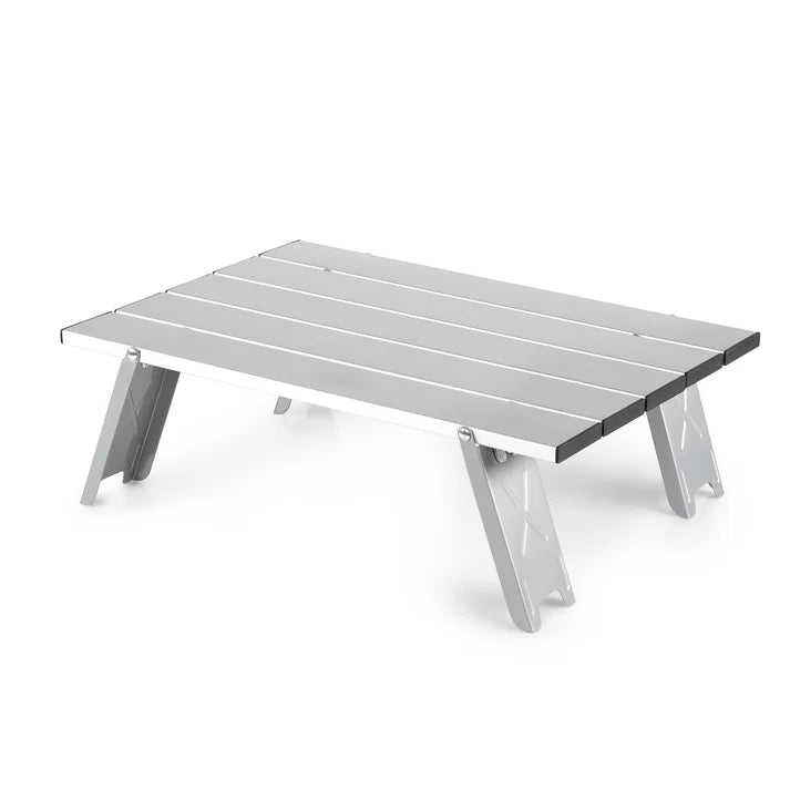 Made from sturdy anodized aluminum, this compact camping table is easy to set up and supports up to 20 lbs. It features four collapsible legs and folds neatly into its own tote for effortless transport and storage.