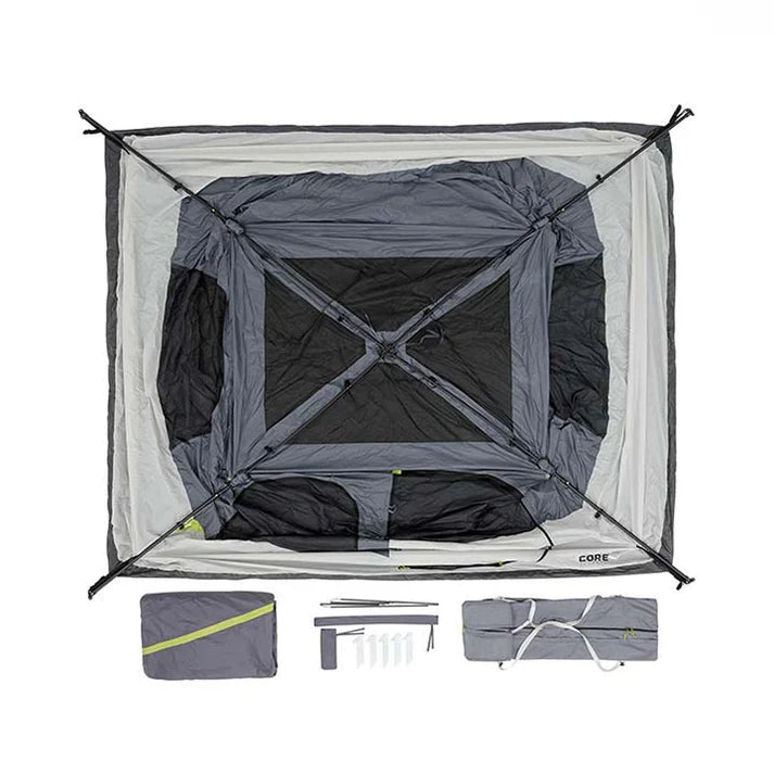 WHAT’S IN THE BAG: Includes tent with pre-attached poles, full rainfly with attached guylines, wall organizer, gear loft, tent stakes, and carry bag.