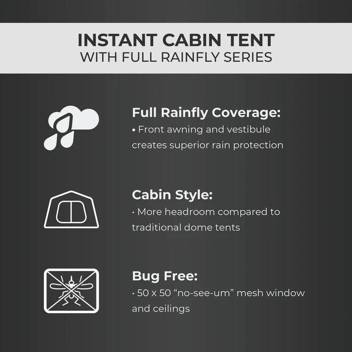 INSTANT SETUP: The tent body with pre-attached poles that lock into place creates a setup time as short as 60 seconds.
