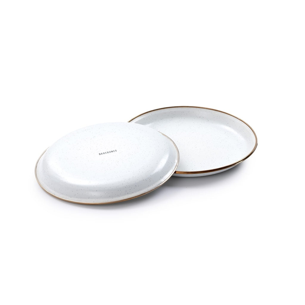 The Barebones Enamel Salad Plate Set of 2 – Eggshell offers a harmonious blend of vintage aesthetics and modern durability, making it suitable for both indoor dining and outdoor adventures. Crafted with a steel core and coated in a creamy eggshell enamel finish, these salad plates feature a speckled texture that adds a rustic charm to any table setting. The hand-finished baked stainless steel rim develops a bronze-like patina over time, ensuring each piece is uniquely characterized. The raised edges are thoughtfully designed to contain sauces and prevent spills, enhancing both functionality and style.​