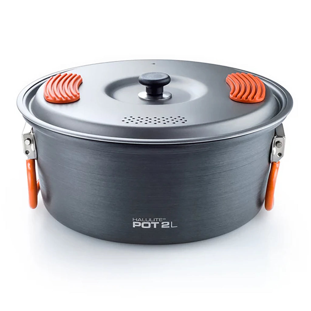 Made from Halulite hard-anodized aluminum, this 2-liter pot offers superior conductivity to titanium while remaining exceptionally lightweight. It cooks more efficiently, allowing you to travel farther with less fuel. The integrated silicone thumb pads on the lid ensure safe and secure pasta straining.