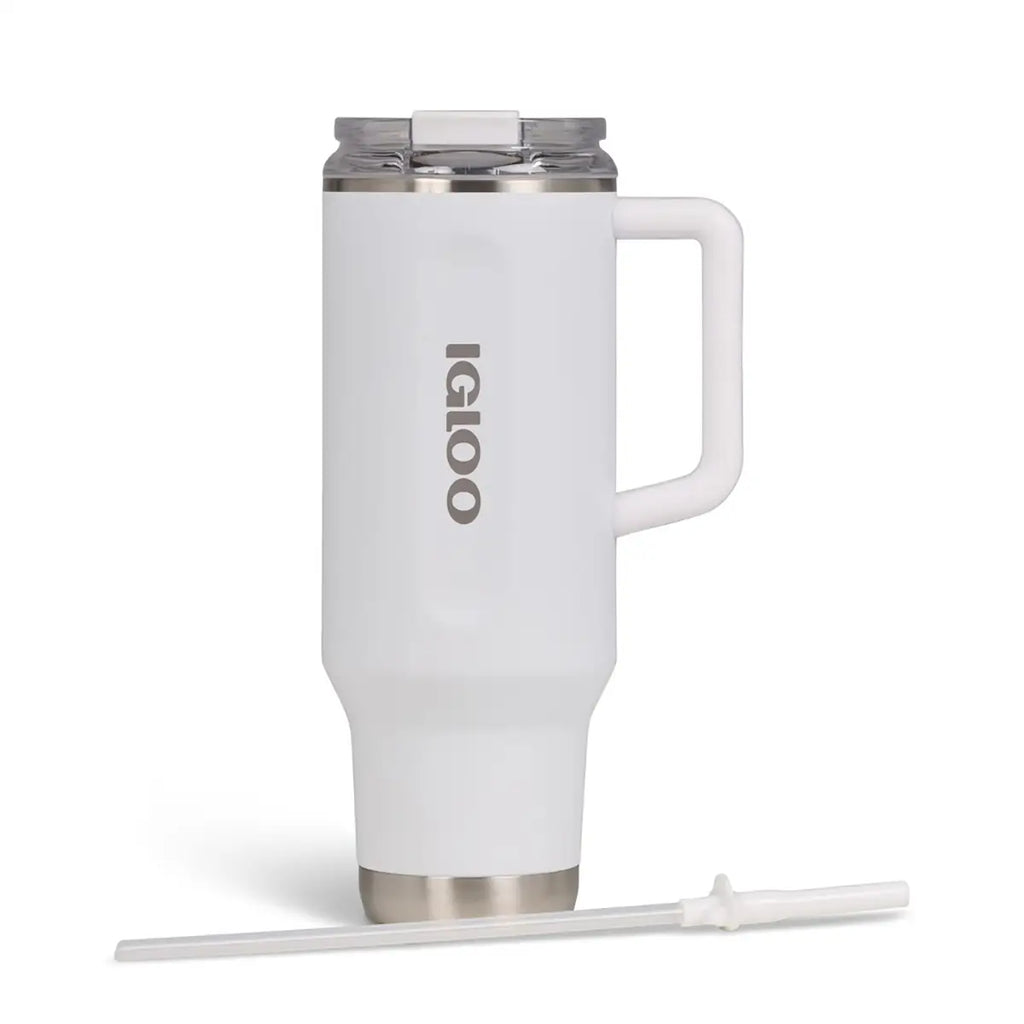 The IGLOO 40 oz Stainless Steel Travel Mug – White is a robust and eco-friendly hydration solution designed for those on the move. Whether you’re commuting, hiking, or embarking on a road trip, this travel mug ensures your beverages stay at the desired temperature while offering user-friendly features.​