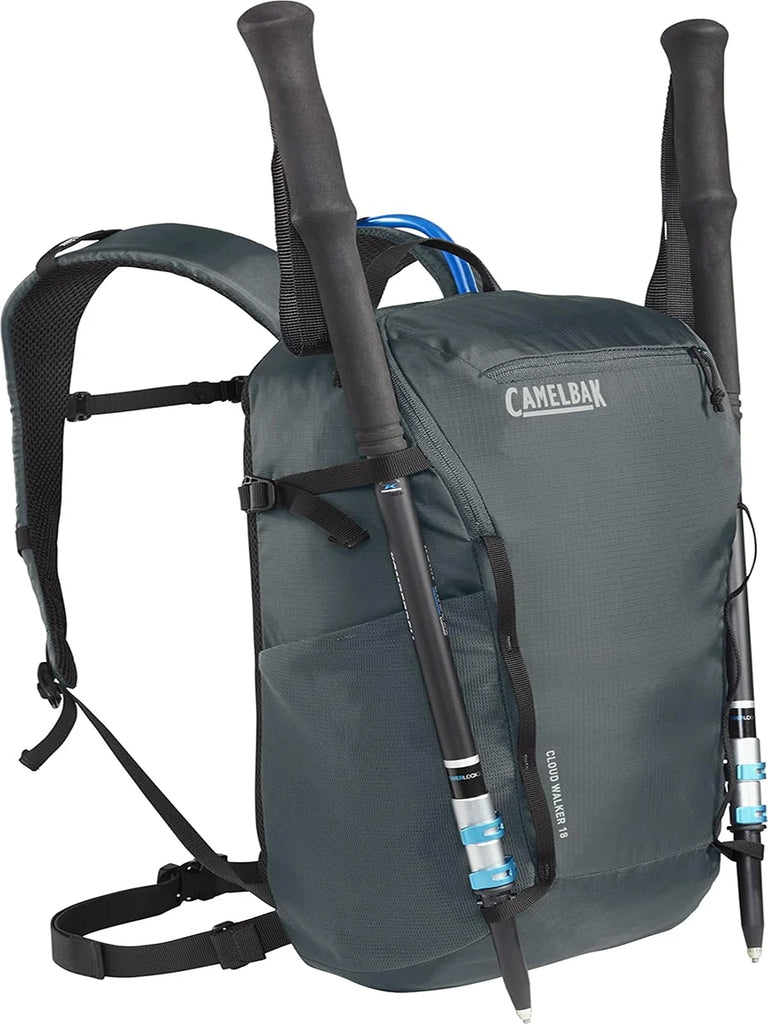 The Cloud Walker™ 18 hike pack has been redesigned to perfectly balance technical features and functionality, making it ideal for both adventure and recreation. Explore with ease and comfort thanks to the Air Support™ Back Panel, made with lightweight materials for maximum ventilation. Stay hydrated and nimble with the generous 2.5L Crux® Reservoir. Keep your essentials accessible in the side cargo pockets, perfect for hydration and tech gear. The removable waist belt provides added flexibility and adjustability on the trail. An additional exterior zip pocket keeps smaller items like snacks secure for the journey, while the trekking pole attachment ensures you can tackle challenging terrain with ease.