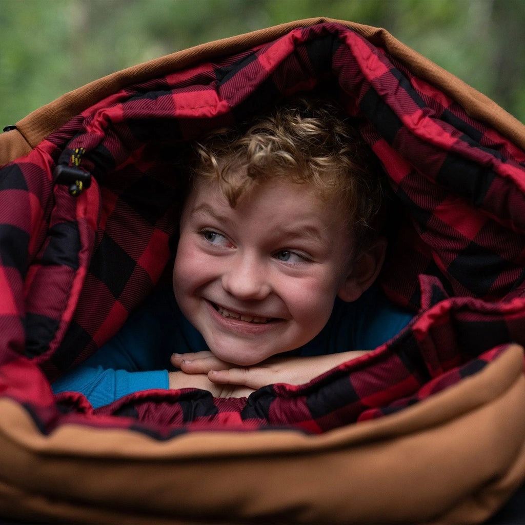 Experience unmatched comfort with the Bridger Sleeping Bag, our most spacious and rugged sleeping bag. Designed for campers who need extra room, this oversized sleeping bag is significantly wider than standard rectangular bags. Featuring a tough 600D polyester canvas shell and a soft flannel lining, it efficiently retains heat while keeping you cozy all night. The cinchable mummy hood provides added warmth, making it perfect for a wide range of weather conditions, from -35˚F to +20˚F.