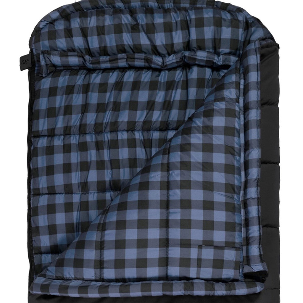 Experience unmatched comfort with the Bridger Sleeping Bag, our most spacious and rugged sleeping bag. Designed for campers who need extra room, this oversized sleeping bag is significantly wider than standard rectangular bags. Featuring a tough 600D polyester canvas shell and a soft flannel lining, it efficiently retains heat while keeping you cozy all night. The cinchable mummy hood provides added warmth, making it perfect for a wide range of weather conditions, from -35˚F to +20˚F.