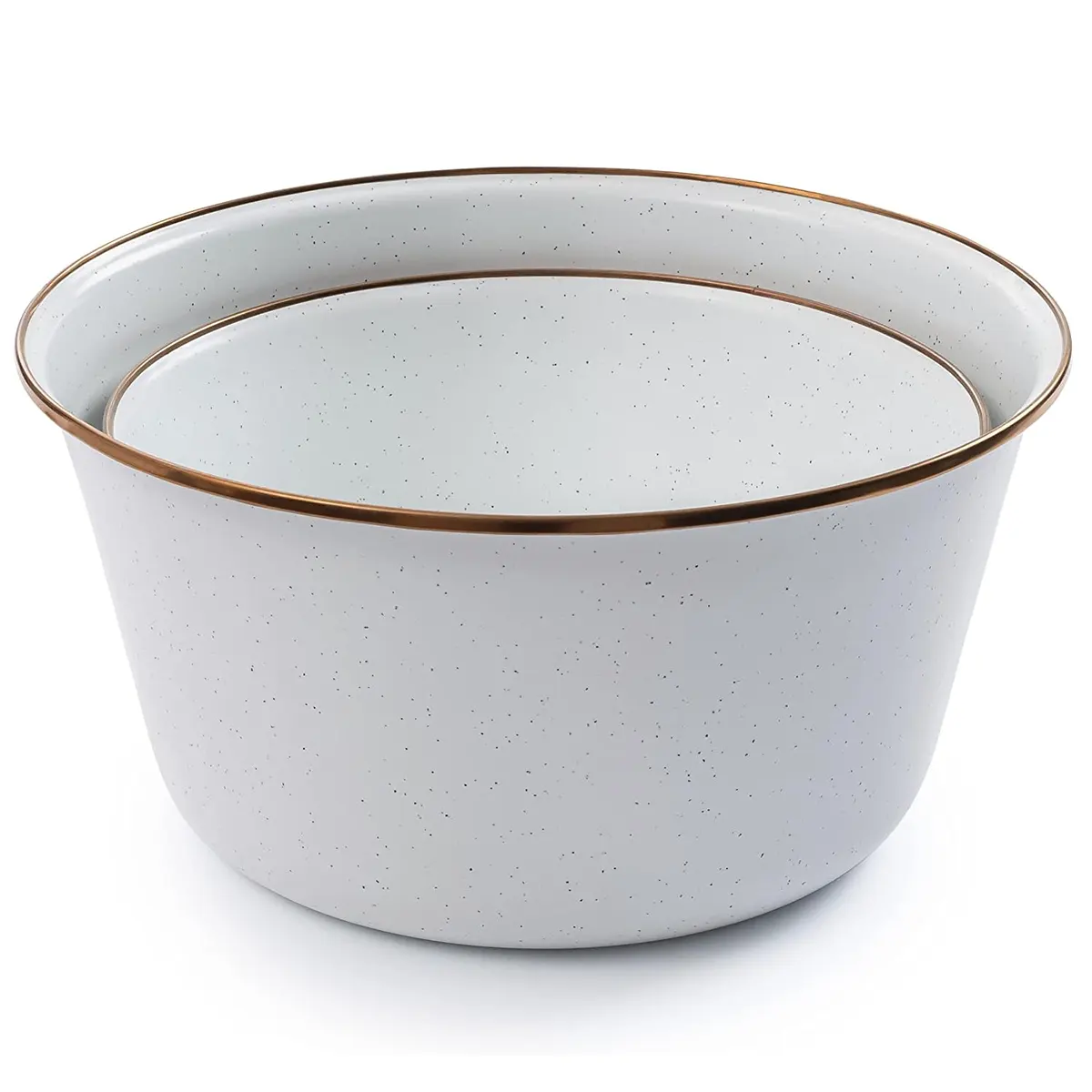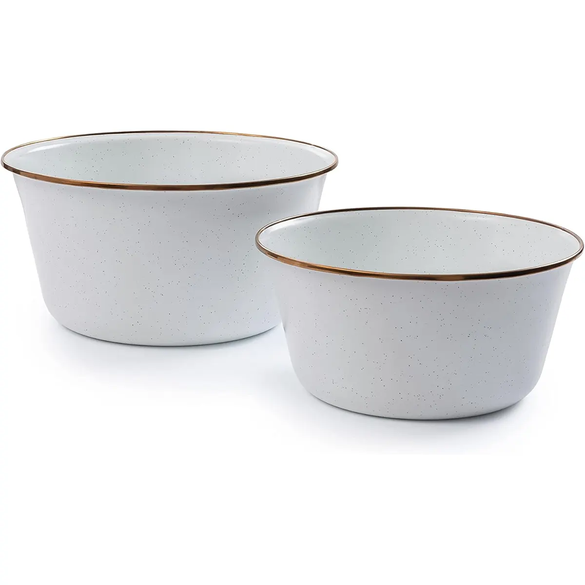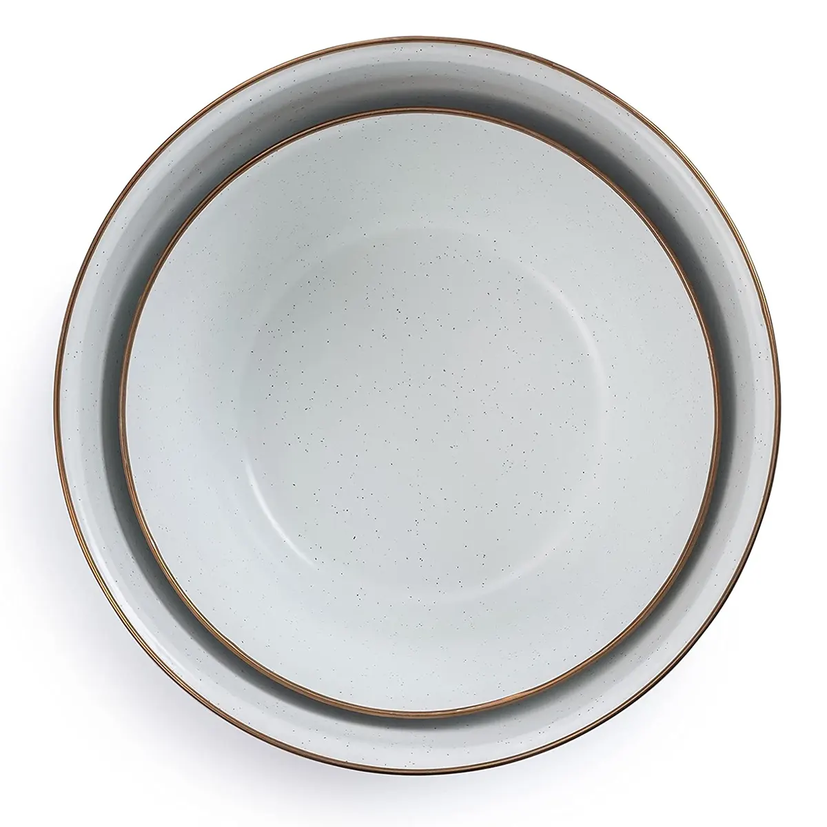 The Barebones Enamel Mixing Bowl Set of 2 – Eggshell is a versatile and aesthetically pleasing addition to any kitchen or camp setup.