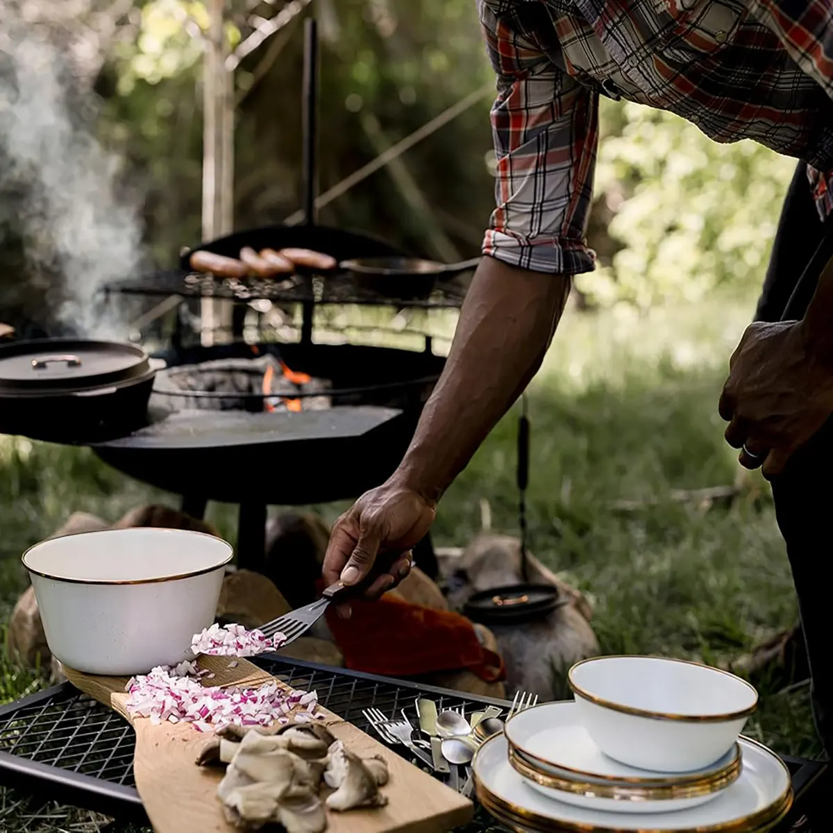 The Barebones Enamel Mixing Bowl Set of 2 – Eggshell is a versatile and aesthetically pleasing addition to any kitchen or camp setup. Designed with both functionality and style in mind, this set is ideal for mixing, serving, and preparing a variety of dishes. This set includes two enamel bowls in a creamy eggshell hue with a speckled finish, offering a vintage-inspired look. Each bowl features a hand-finished, baked stainless steel rim that develops a unique bronze-like patina over time. Lightweight and stackable, these bowls are suitable for both indoor and outdoor use, making them perfect for home kitchens or camping trips.