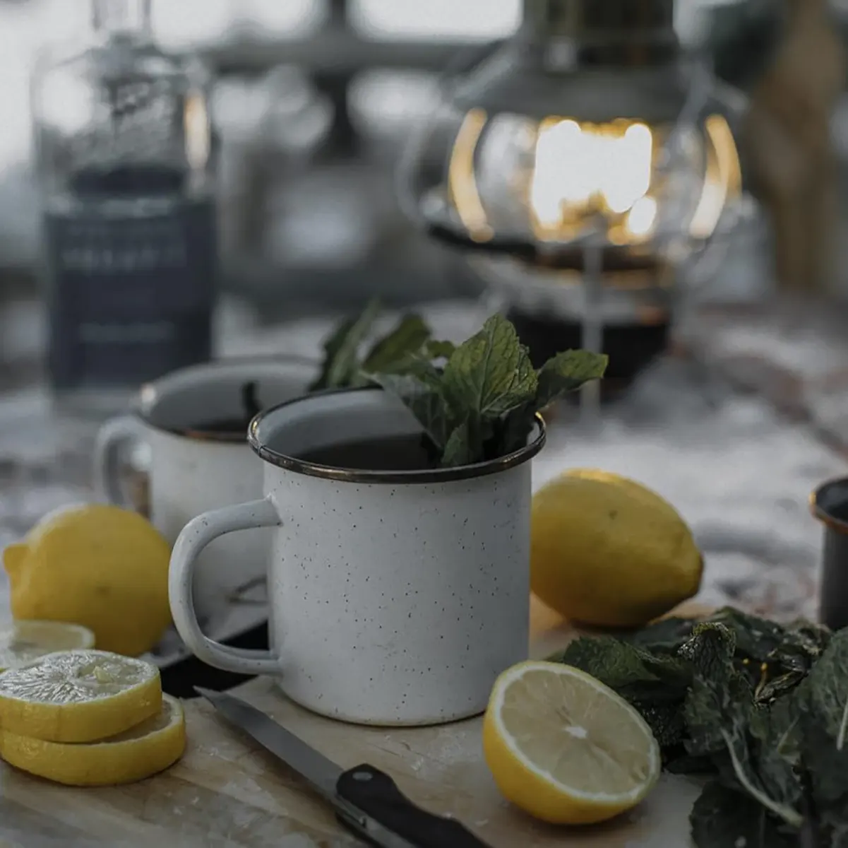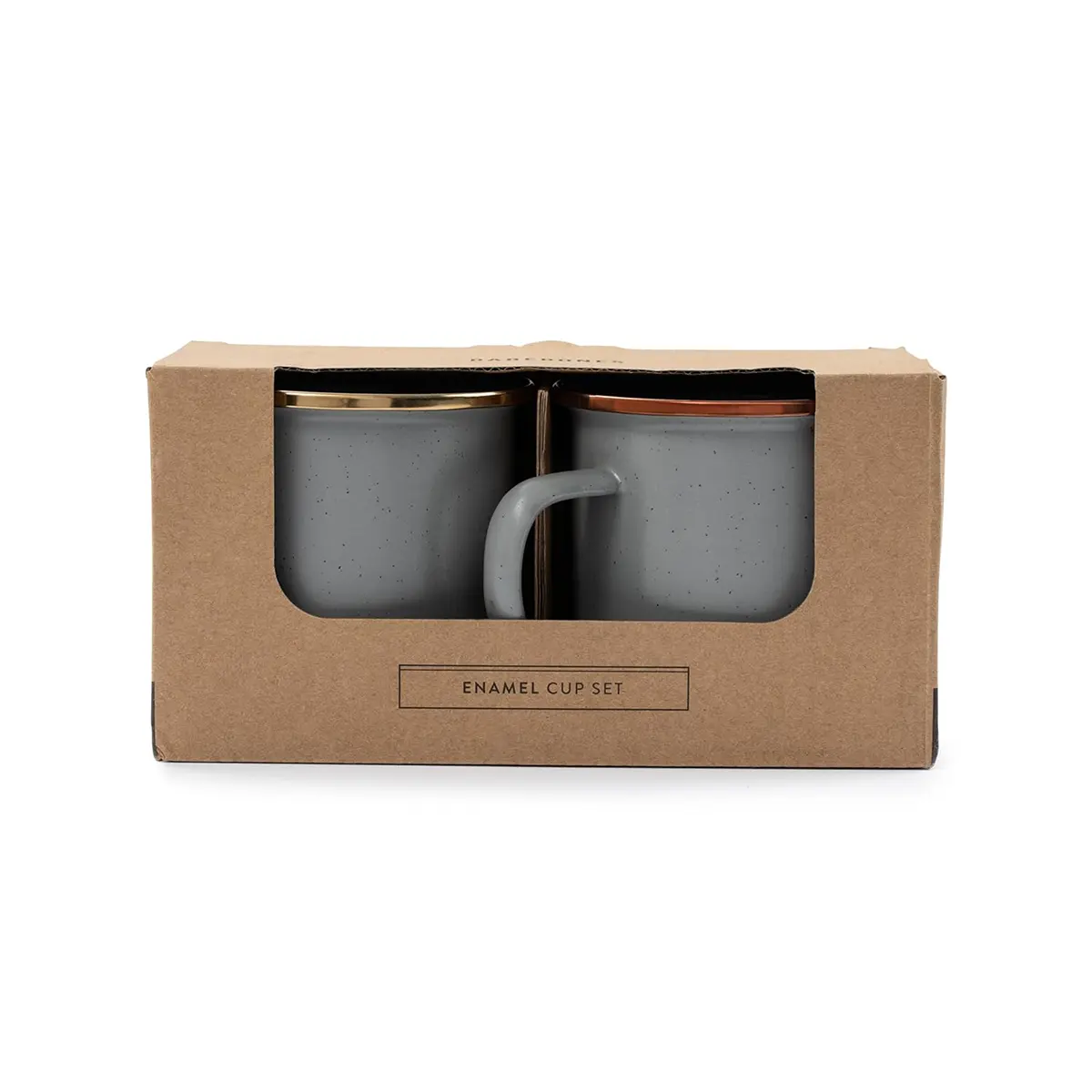 The Barebones Enamel Mug Set of 2 – Eggshell is a vintage-inspired drinkware set designed for both indoor and outdoor use.