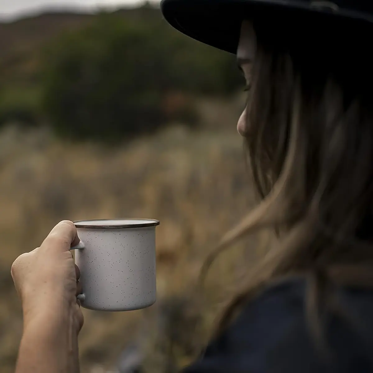The Barebones Enamel Mug Set of 2 – Eggshell is a vintage-inspired drinkware set designed for both indoor and outdoor use. These mugs are ideal for camping, picnics, or everyday home use, combining durability with a classic aesthetic. Each mug features a creamy eggshell enamel finish with a speckled texture, complemented by a hand-finished baked stainless steel rim that develops a bronze-like patina over time. The enamel coating offers a sleek, easy-to-clean finish, while the steel core adds strength and long-lasting durability. Slight variations in color on the rim are expected, adding to the unique character of each piece.