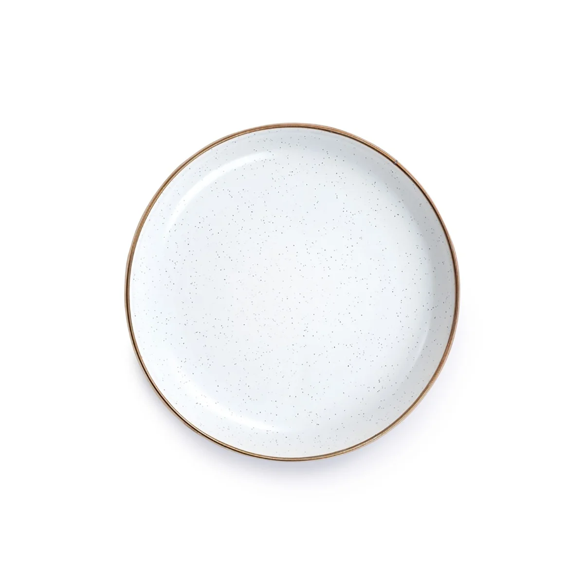 The Barebones Enamel Salad Plate Set of 2 – Eggshell offers a harmonious blend of vintage aesthetics and modern durability, making it suitable for both indoor dining and outdoor adventures. Crafted with a steel core and coated in a creamy eggshell enamel finish, these salad plates feature a speckled texture that adds a rustic charm to any table setting. The hand-finished baked stainless steel rim develops a bronze-like patina over time, ensuring each piece is uniquely characterized. The raised edges are thoughtfully designed to contain sauces and prevent spills, enhancing both functionality and style.
