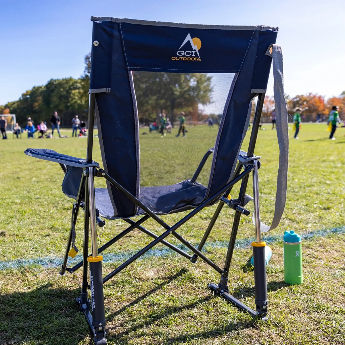The GCI Comfort Pro Rocker™ featuring patented Spring-Action Rocking Technology™, it delivers a smooth, gentle rocking motion on various surfaces. The durable, powder-coated steel frame ensures stability, while the breathable, weather-resistant fabric provides long-lasting comfort. With its ergonomic design, padded armrests, and foldable frame, this rocker is perfect for camping, tailgating, patios, or backyard lounging. Its lightweight, portable design makes it easy to carry and set up wherever you go.