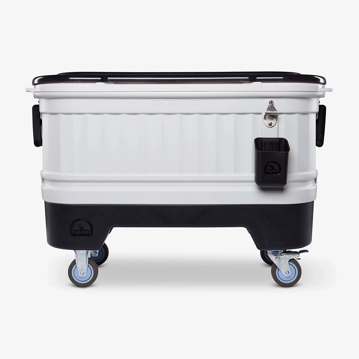 The IGLOO Party Bar 125 Qt Cooler – Gray is a versatile and spacious cooler designed to keep your beverages chilled during gatherings, tailgates, or outdoor events. Its design draws inspiration from traditional Texas icehouse beer chests, combining functionality with a classic aesthetic.​ This 125-quart cooler offers ample space to store drinks and features a range of convenient additions, including a removable lid, drink dividers, and a bottle caddy. Its elevated base and locking casters ensure easy mobility and accessibility, making it an ideal companion for any party setting.​