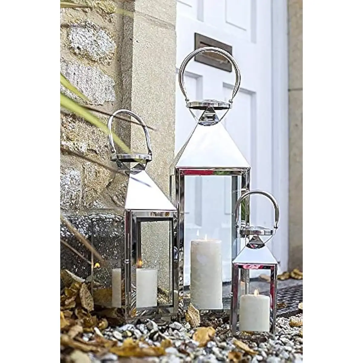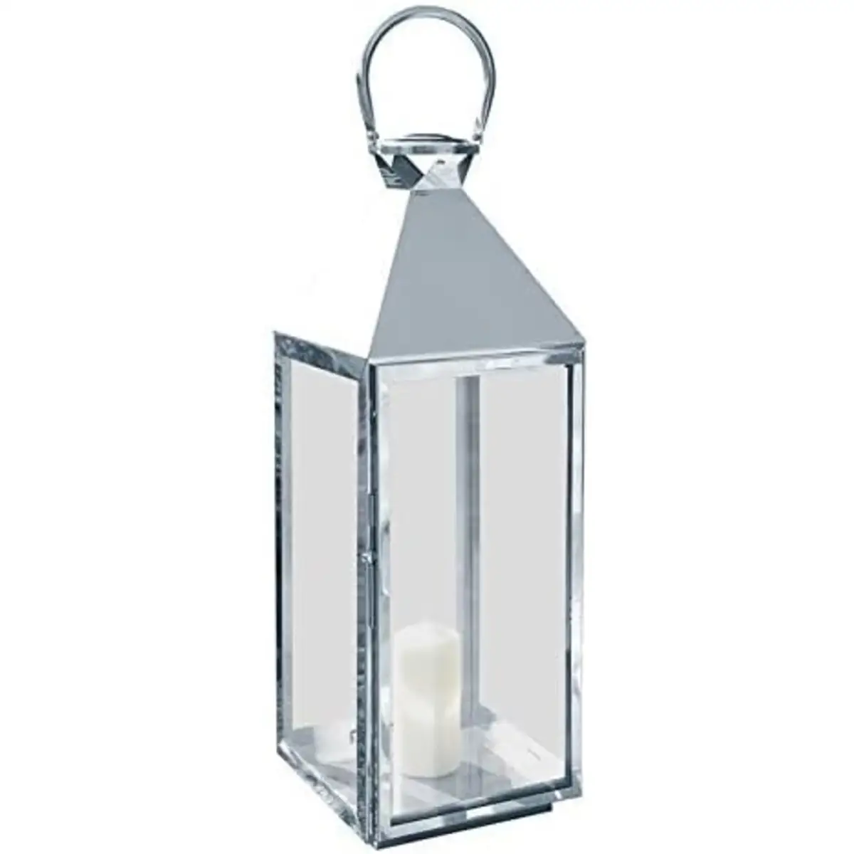 The La Hacienda Palma Lantern – Medium is a stylish and functional lighting accessory designed to enhance both indoor and outdoor spaces. Its sleek design, featuring polished silver metal and glass, adds a touch of elegance to any setting. Constructed with a sleek polished silver metal frame and clear glass panels, the La Hacienda Palma Lantern brings a modern, elegant touch to any setting. Its medium size offers flexibility, making it perfect for hanging in gardens, patios, or indoor areas.