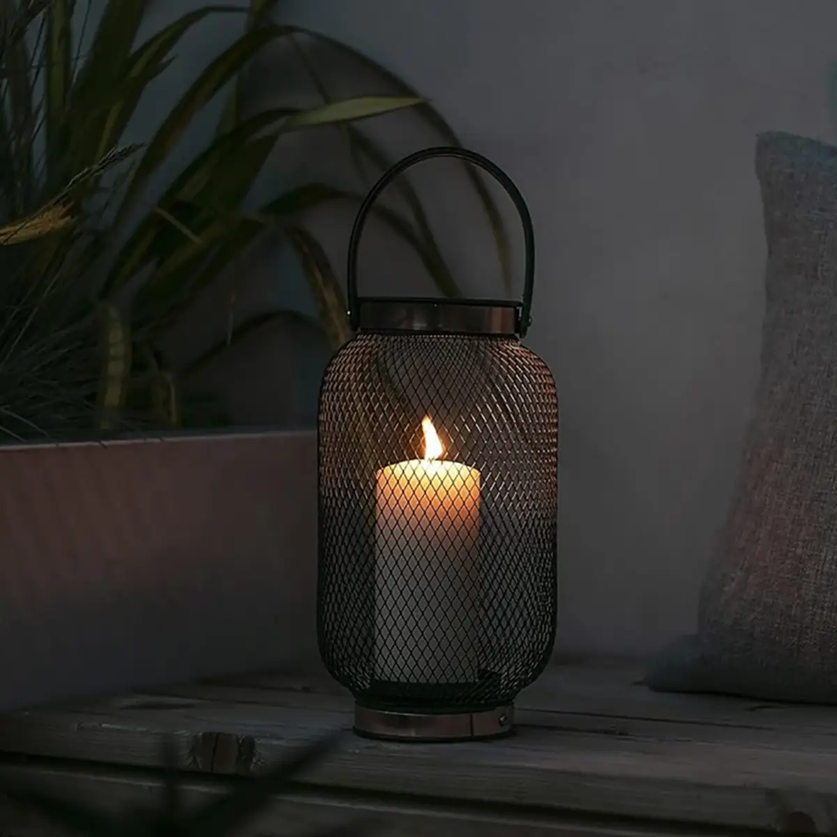 The La Hacienda Zora Lantern – Large is a striking decorative piece designed to enhance both indoor and outdoor spaces with its contemporary aesthetic. Crafted from durable steel, it features a sleek black finish complemented by elegant rose gold detailing, making it a standout addition to any setting. This lantern boasts a steel mesh construction that not only adds to its visual appeal but also ensures durability. The top looped handle facilitates easy hanging or carrying, while the hinged door allows for convenient placement of candles. Whether used with real or LED candles, the Zora Lantern creates a warm and inviting ambiance, perfect for gardens, patios, or indoor spaces