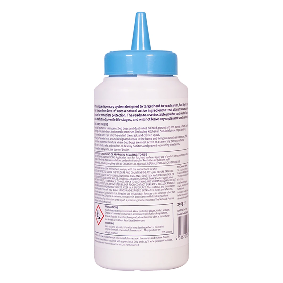 The STV ZER982 Zero In Bed Bug & Dust Mite Killer Powder (250g) is a natural, ready-to-use insecticidal powder formulated to eliminate bed bugs and dust mites at every stage of their life cycle.