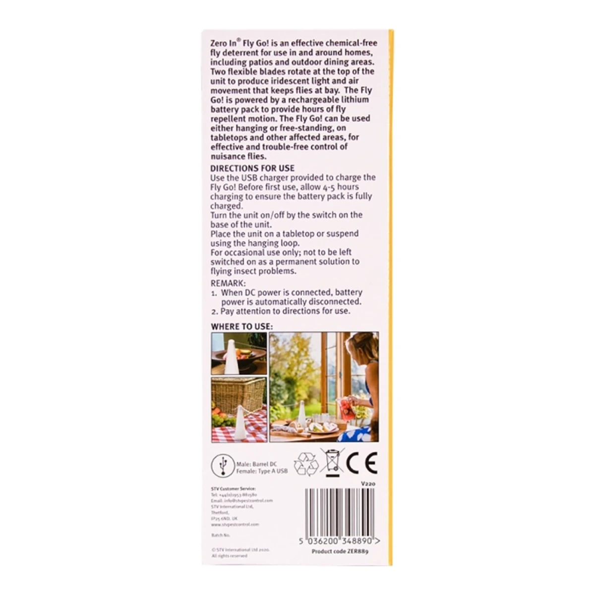 The STV ZER889 Zero In Fly Go! USB Rechargeable Fan Repeller is a chemical-free, eco-friendly solution designed to deter flies and other flying insects from your indoor and outdoor spaces.