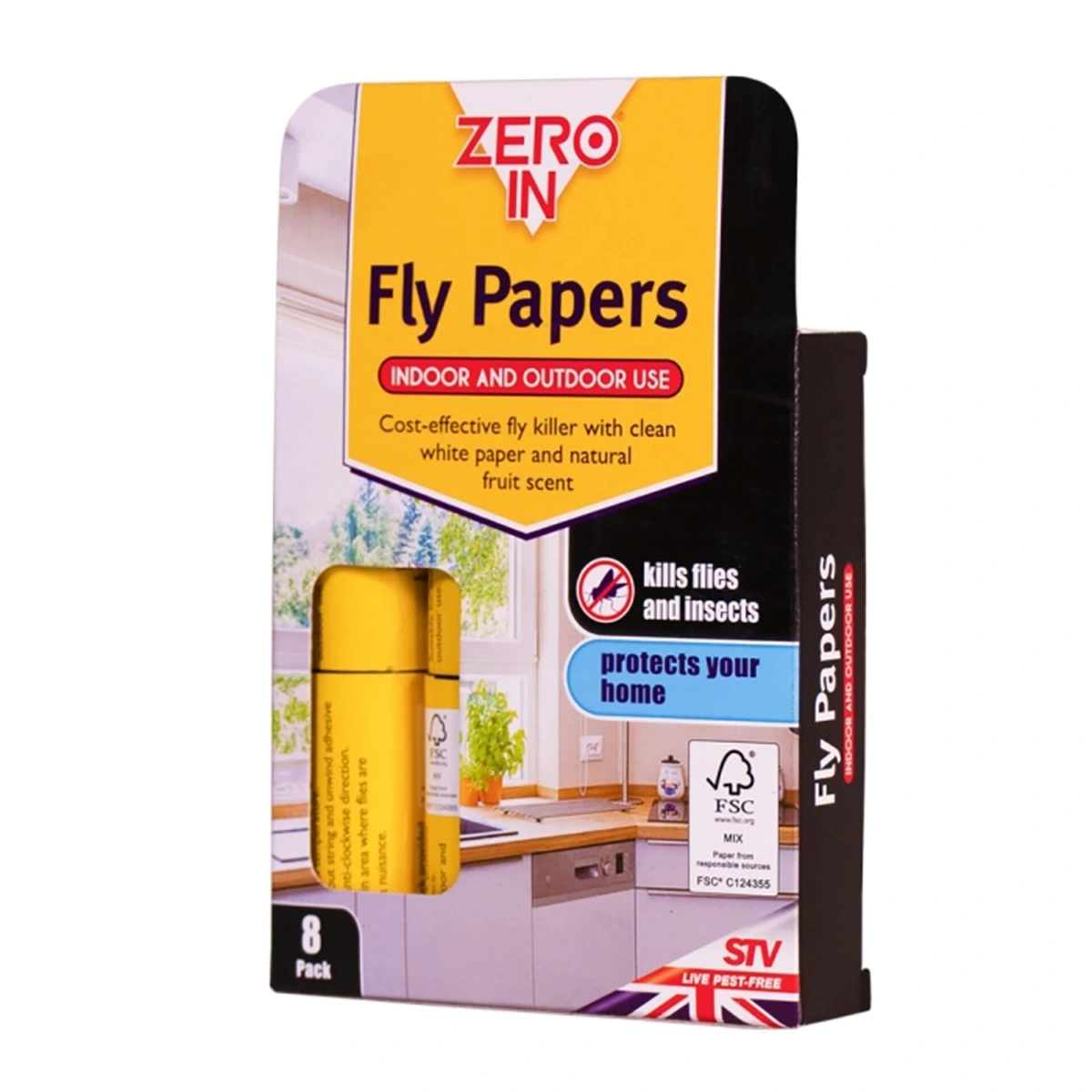 The STV ZER878 Zero In Fly Papers FSC – 8-Pack offers a traditional, eco-friendly solution for controlling flying insects.