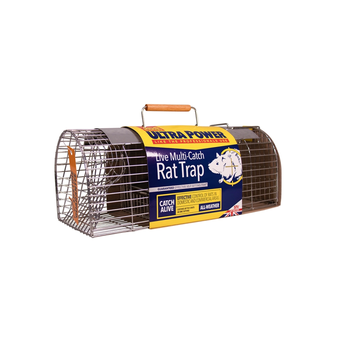 The STV Live Multi-Catch Rat Trap (Model STV080), also called The Big Cheese Ultra Power Live Multi-Catch Rat Trap, offers a humane and reusable way to manage rat infestations in both homes and commercial spaces
