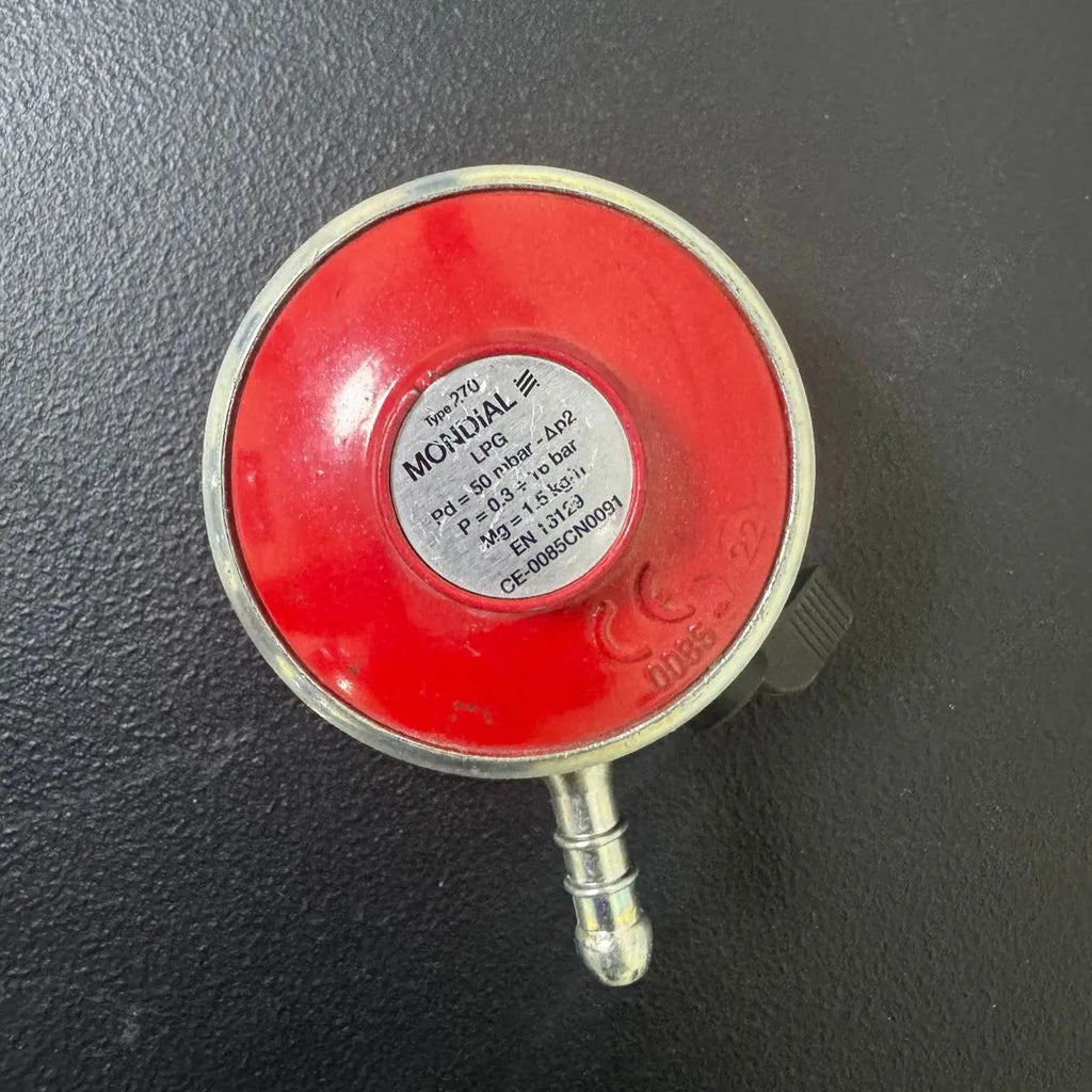 The 50 mbar Gas Regulator is designed for a steady and reliable gas supply to griddles, ensuring optimal performance and safety during cooking. It regulates propane or butane gas flow efficiently, preventing pressure fluctuations for a consistent heat output. Ideal for outdoor and professional cooking setups.