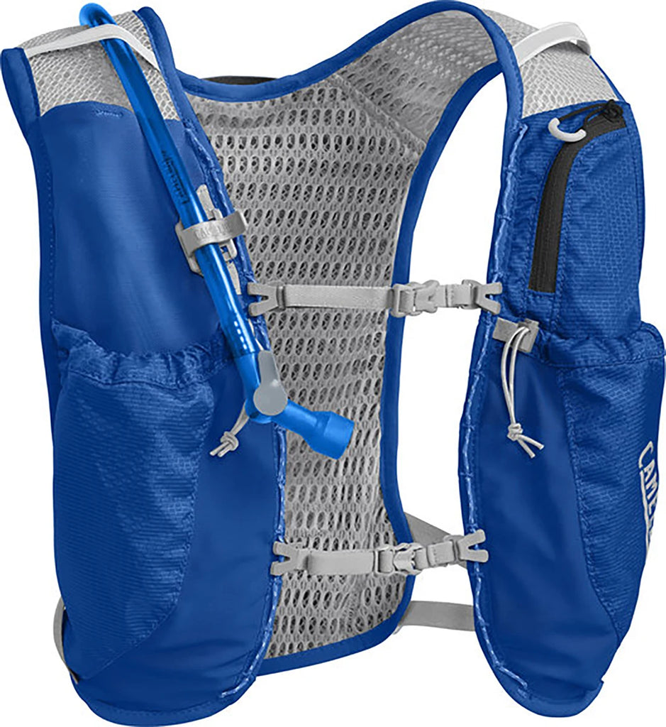 The Circuit™ Vest features a 1.5L CRUX™ reservoir, delivering 20% more water per sip while remaining lightweight for enhanced comfort. Its aerodynamic dual sternum strap adjustment system includes built-in reflectivity for safety, while the new 3D Micro Mesh provides improved ventilation and breathability. A secure zippered pocket fits most smartphones, and the open front pockets are designed for Quick Stow™ flasks, offering extra hydration when needed. With a one-size-fits-most design and highly adjustable lateral compression, this vest ensures a secure and stable fit across various activities and terrains.