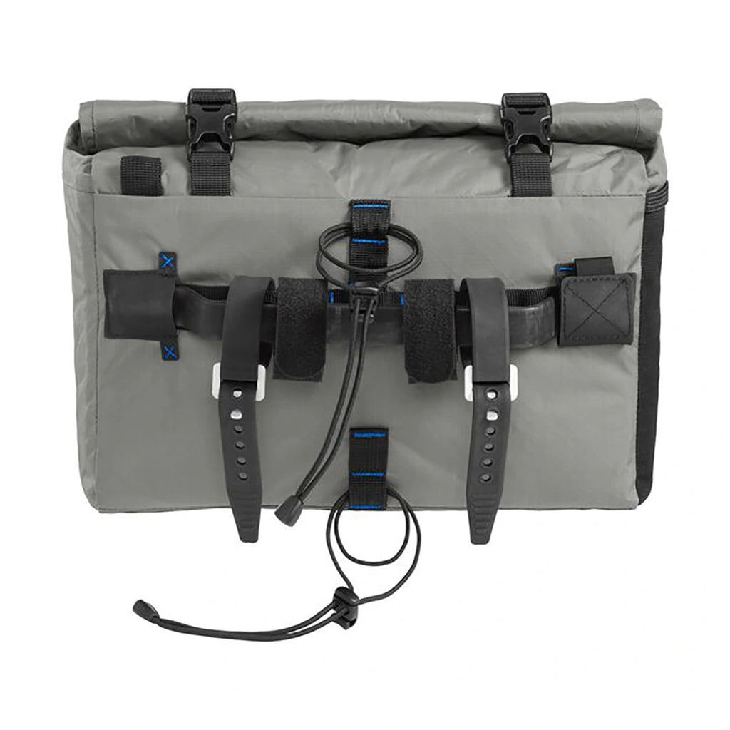Stay prepared for any adventure with the M.U.L.E.® 12 Handlebar Pack. Crafted from IPX5 waterproof-rated recycled sailcloth, it features a roll-top design, a secure zippered pocket, and an aluminum stay for a rock-solid handlebar attachment. Perfect for storing your tent, and other bikepacking essentials, this durable pack ensures your gear stays secure and ready for every ride.