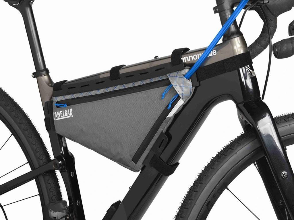 Go the distance with the extended range capabilities of our M.U.L.E.® Frame Pack, Small. Designed around a Quick Stow™ 2L Bike Reservoir, it provides ample hydration to keep you going on multi-day adventures, along with plenty of extra space for your essential gear. Constructed from recycled ECOPAK™ sailcloth, it features a PFAS-free DWR coating with an IPX5 waterproof rating for exceptional durability. Adjustable straps ensure a secure fit, while a zippered pocket keeps electronics like your phone, GPS, or other gear easily accessible.