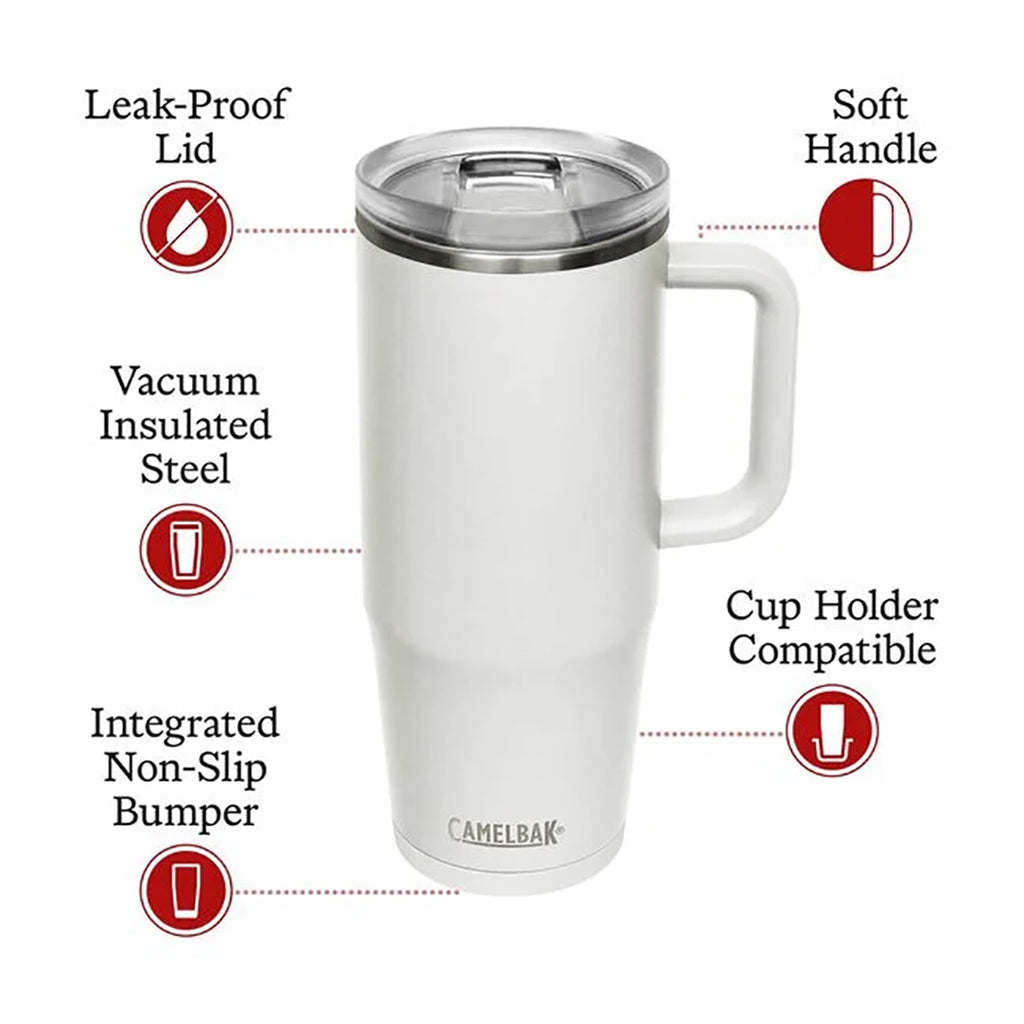 Power through your day without missing a beat with the Thrive™ Leak-Proof 32oz Mug. Designed to keep up from sunrise to sunset, its vacuum insulation ensures your drink stays at the perfect temperature—cold for 21 hours or hot for 10 hours. Whether you’re tackling rocky roads to a remote campsite or rushing to catch your train, the leak-proof lid and non-slip bumper prevent spills so you can stay focused on the journey ahead.