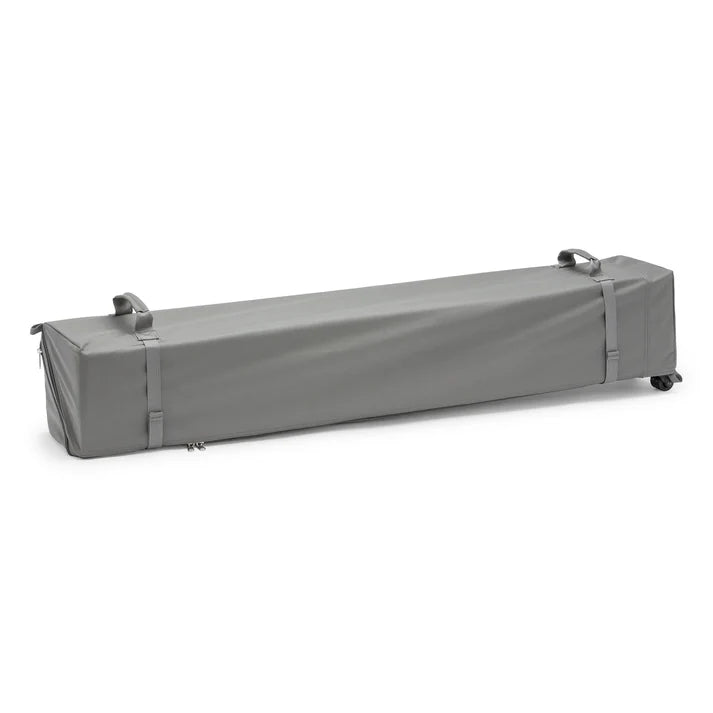 WHAT’S IN THE BAG: Includes Frame, Canopy with Attached Guylines, Stakes, and Wheeled Carry Bag.
