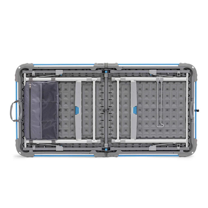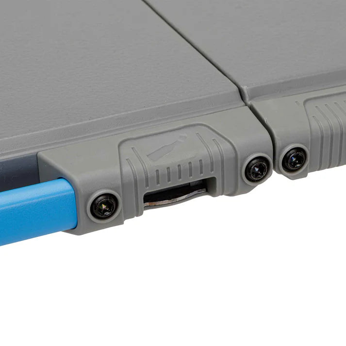 FLEXRAIL® SYSTEM: Constructed with durable steel, the system features a lantern holder, (4) removable clips, and (2) cup holders, allowing you to customize your camp table.
