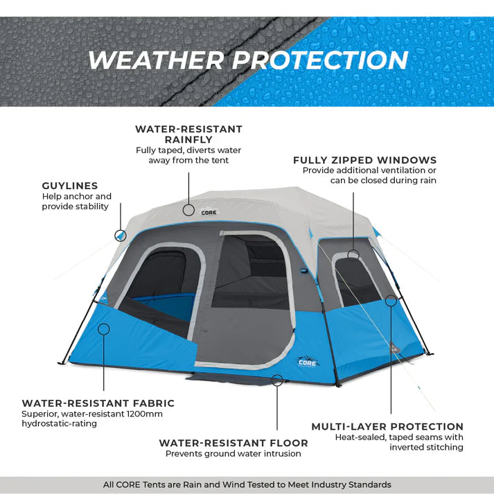 WEATHER PROTECTION: H20 Block Technology combines water-repellent fabrics with a fully taped rainfly and sealed seams to resist rain.